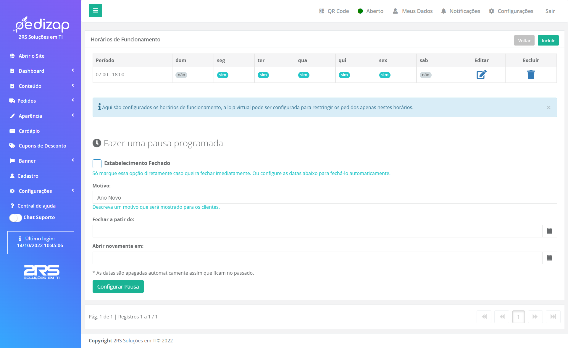 Com o acesso total do seu estabelecimento você entenderá melhor quais os horários de picos e ainda poderá controlar os dias e horas que fará o atendimento. Então não se preocupe se o cliente tentar fazer um pedido as 24h e você já encerrou as atividades naquele dia, o sistema tem um alerta que não permite a compra fora do seu horário de atendimento.